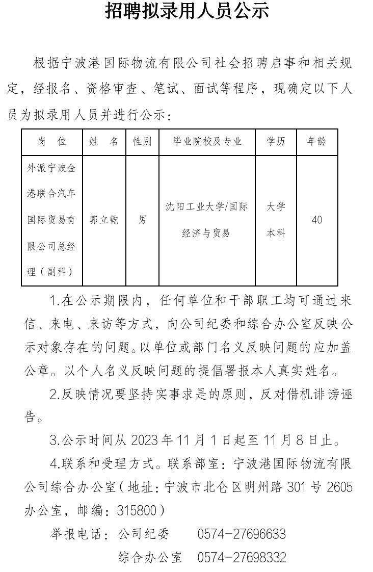 宁波港国际物流有限公司综合办公室