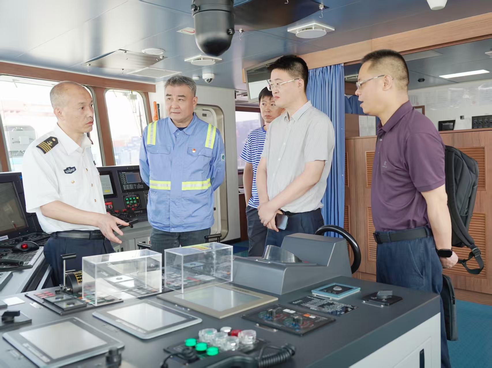 靠泊期间,“新红专”轮累计接待大连海事大学在甬校友、交通、海事主管部门领导、宁波舟山港集团领导等十余场实船观摩和交流学习活动的嘉宾,并在该轮上组织了校地合作座谈交流、青少年“航海小课堂”等活动。公司积极配合做好活动1号泊位码头面的安全保障工作,组织近20名青年志愿者负责道路指引、泊车引导、现场维护等工作,为观摩交流活动顺利展开保驾护航。